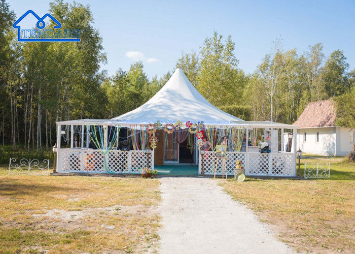 Bingkai:Bingkai tenda pagoda biasanya terbuat dari bahan ringan namun kokoh seperti aluminium atau baja.dan sifat ringanKerangka baja menawarkan kekuatan dan daya tahan yang luar biasa, menjadikannya ideal untuk aplikasi yang lebih permanen atau tugas berat.