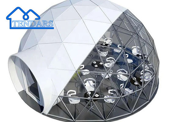 Makan dan Hiburan: Tenda kubah geodetik dapat diubah menjadi area makan, bar, ruang tamu, atau tempat hiburan bagi tamu untuk bersosialisasi, makan, dan menikmati pertunjukan langsung atau pengalaman budaya.Desain mereka yang fleksibel memungkinkan kustomisasi kreatif sesuai dengan tema atau tujuan yang berbeda.